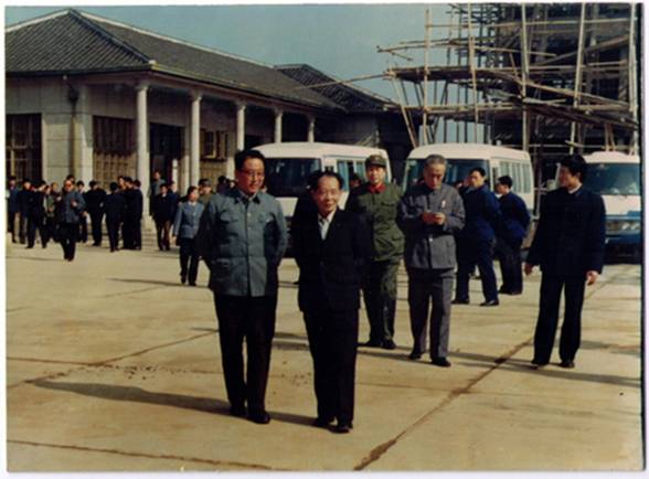 2、1991年3月國(guó)務(wù)院三線調(diào)遷辦主任魯大東(右1)在江西省副省長(zhǎng)錢家銘,長(zhǎng)林機(jī)械廠副廠長(zhǎng)胡孟理的陪同下視察新余新廠建設(shè)