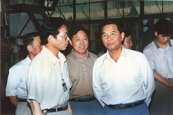 3、1996年6月省委書記吳官正在省委副秘書長(zhǎng)、辦公廳主任熊盛文、市委書記嚴(yán)顯烈、市長(zhǎng)丁耀民等陪同下來(lái)廠調(diào)研