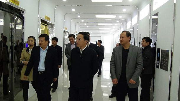 17、2015年4月27日,省工信委副主任劉煜一行在市工信委副主任劉偉忠、高新區(qū)黨工委副書記孫昕輝的陪同下蒞臨公司視察指導(dǎo)工作