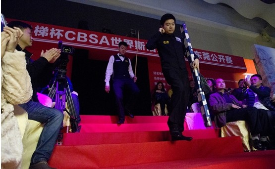 3月5日晚7點15分,2014年CBSA世界斯諾克球員巡回賽“亞洲富士長林電梯”杯東莞公開賽(APTC4)展開首輪最后時段的交鋒。剛剛從威爾士趕回的丁俊暉在千呼萬喚中壓軸登場亮相,迎接95后年輕小將王千瑋的挑戰,前兩局王千瑋堪稱驚艷的準度讓大家眼前一亮,也為丁俊暉制造了些許麻煩。丁俊暉在防守端的優勢幫助他最終完成了連扳四局的逆轉,4-2有驚無險晉級64強。
